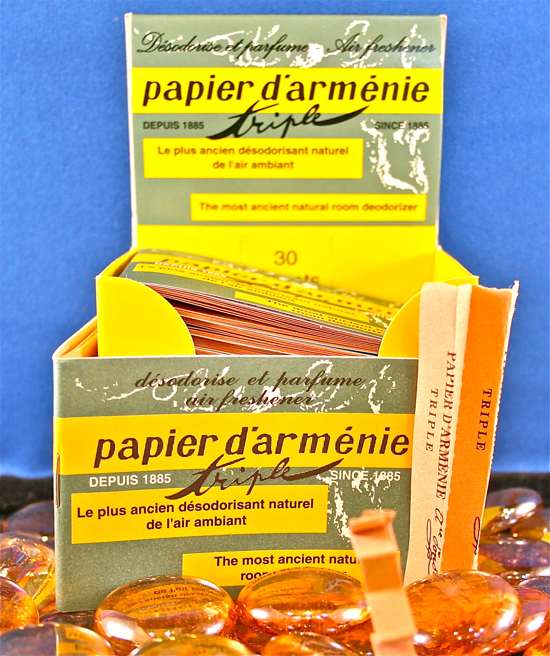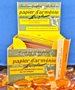Papier d’Amernie, so ancient it has its’ own wikipedia page, and now it’s sharing a little part of history with Thompson Alchemists. These booklets retail for $7.00 each and houses 12 sheets of paper, each cut into three. Tear one off, fold it accordian style, light it up and blow it out as you would incense. Enjoy the exotic, subtle, and purifying scent of vanilla that follows.