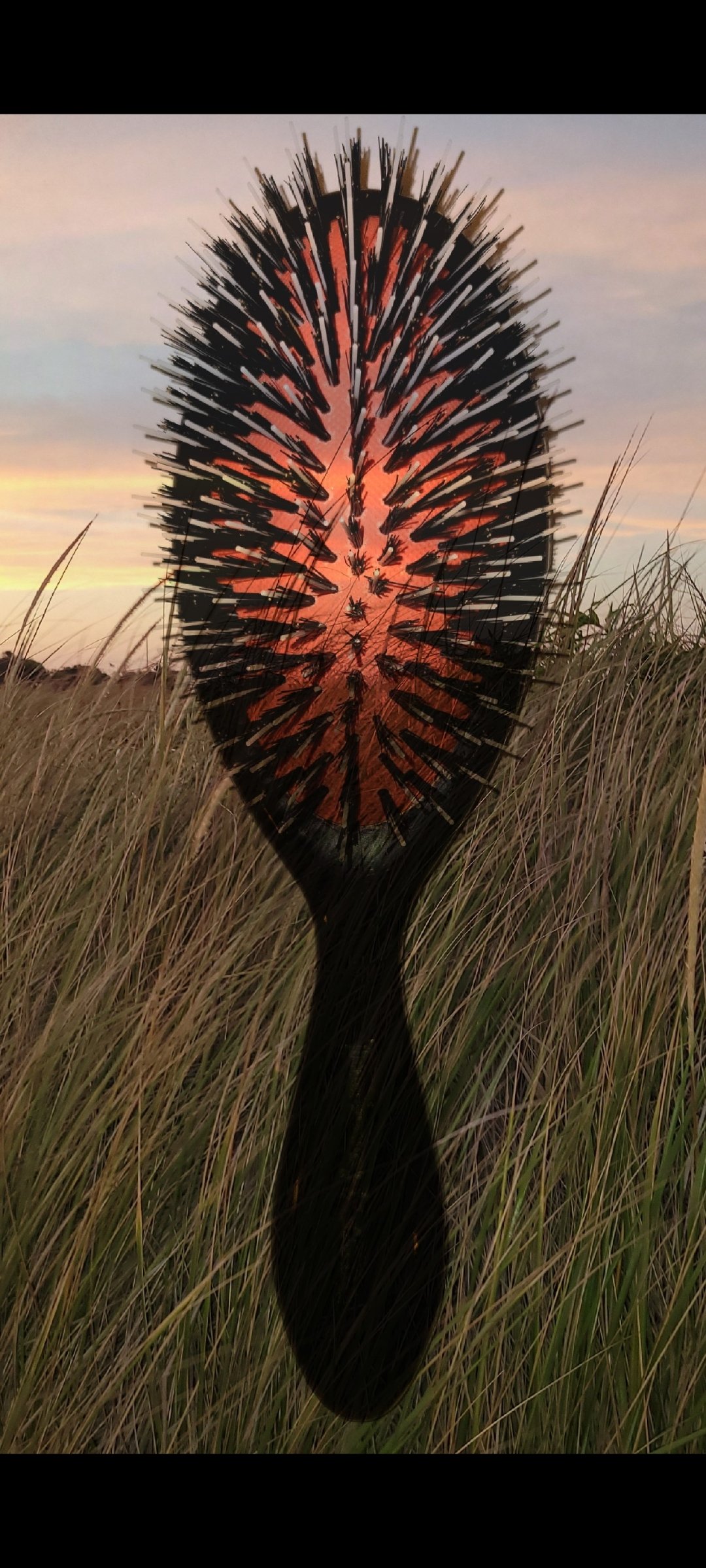 Thompson Alchemists mixed nylon boar bristle hairbrush detangles hair. Flexible padding adjusts to the contour of the scalp. Great for hair extensions